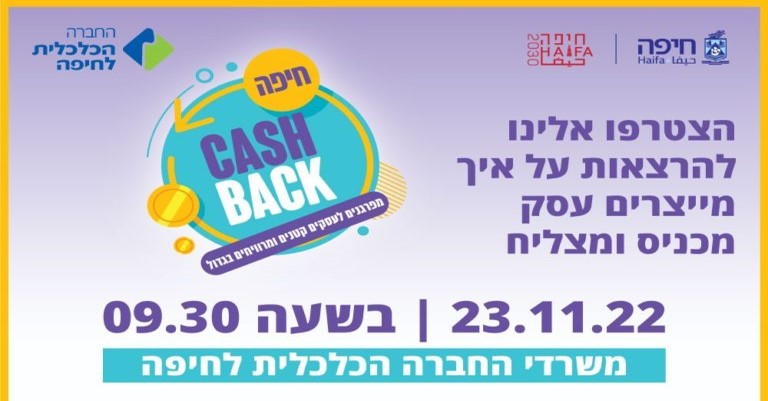 החברה הכלכלית לחיפה, ממשיכה להשקיעה ולפעול למען העסקים בעיר. החברה מציעה כעת בוקר הרצאות העשרה נוסף, חינמי, לעסקים המשתתפים בתוכנית "חיפה קש בק". נושא ההרצאות הפעם הוא "מייצרים עסק מצליח".
